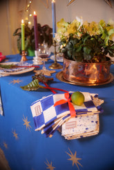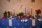 Our tablecloths are beautifully crafted and created in Jaipur using traditional block print techniques. Each tablecloth is hand block printed in a classic star design.