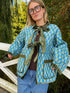 Reversible Jacket - Green Velvet with Blue Floral Reverse