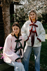 Elevate your wardrobe with our stunning fully reversible cotton block print jackets—an indulgent blend of luxury and versatility. Designed to make a statement, these oversized jackets are adorned with elegant velvet bows and feature dramatic puff sleeves that exude timeless sophistication. Perfect for layering or as a bold standalone piece, the reversible design ensures two exquisite looks in one. Whether you're dressing for an evening event or adding a touch of glamour to your daytime ensemble, these jackets are the ultimate addition to your collection. Style meets comfort in a silhouette that commands attention.