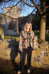 Elevate your wardrobe with our stunning fully reversible cotton block print jackets—an indulgent blend of luxury and versatility. Designed to make a statement, these oversized jackets are adorned with elegant velvet bows and feature dramatic puff sleeves that exude timeless sophistication. Perfect for layering or as a bold standalone piece, the reversible design ensures two exquisite looks in one. Whether you're dressing for an evening event or adding a touch of glamour to your daytime ensemble, these jackets are the ultimate addition to your collection. Style meets comfort in a silhouette that commands attention.