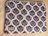 Our beautifully hand crafted laptop pouches are lightly quilted using Indian block print fabric and come in a range of gorgeous colour ways. They are waterproof lined and machine washable
