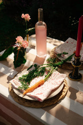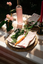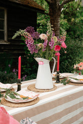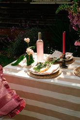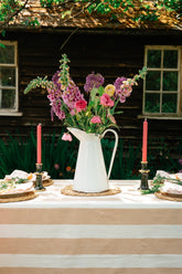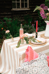 Our tablecloths are beautifully crafted and created in Jaipur using traditional block print techniques. Each tablecloth is hand block printed in a classic wide stripe design.