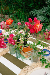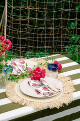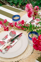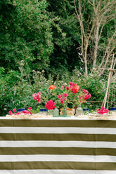 Our tablecloths are beautifully crafted and created in Jaipur using traditional block print techniques. Each tablecloth is hand block printed in a classic wide stripe design. Perfect for larger gatherings and long tables.