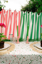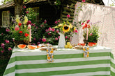 Our tablecloths are beautifully crafted and created in Jaipur using traditional block print techniques. Each tablecloth is hand block printed in a classic wide stripe design. Perfect for larger gatherings and long tables.
