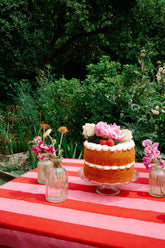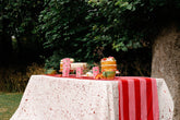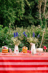 Our tablecloths are beautifully crafted and created in Jaipur using traditional block print techniques. Each tablecloth is hand block printed in a classic wide stripe design.