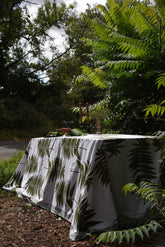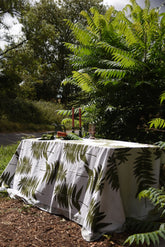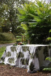 Sarah designed this tablecloth as a little piece of that wild world to bring into your home. On soft, crisp white cotton, each fern is printed with a natural, easy charm that works just as well for a lazy Sunday breakfast as it does for a long, laughter-filled dinner with friends and family.