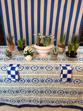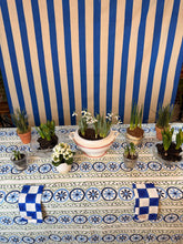Our Sicilian tablecloths are designed by Sarah after a recent trip to Sicily. Inspired by the many mosaic ceilings, these tablecloths are a true statement piece. Available in pink and green and blue and green