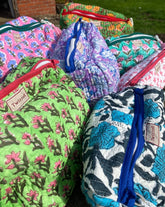 Our stylish and popular, hand block printed quilted cotton wash bags are available in two sizes. Perfect for travelling, pampering yourself or a gift.