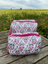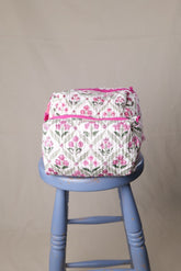 Our stylish and popular, hand block printed quilted cotton wash bags are available in two sizes. Perfect for travelling, pampering yourself or a gift.