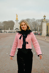 Our gorgeous, vibrant and colourful jackets are reversible and are finished with velvet bows and trim. Fit’s UK sizes 8-16. They instantly elevate any outfit and can be worn casually or for a sophisticated smart occasion. Wear either the striped side or the flower print side for instant sophistication